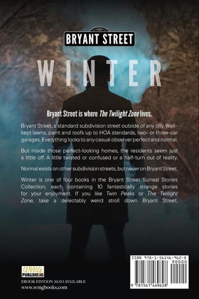 Bryant Street is where The Twilight Zone lives. Bryant Street, a standard subdivision street outside of any city. Well-kept lawns, paint and roofs up to HOA standards, two- or three-car garages. Everything looks to any casual observer perfect and normal. But inside those perfect-looking homes, the residents seem just a little off. A little twisted or confused or a half-turn out of reality. Normal exists on other subdivision streets, but never on Bryant Street. Winter is one of four books in the Bryant Street Surreal Stories Collection, each containing 10 fantastically strange stories for your enjoyment. If you like Twin Peaks or The Twilight Zone, take a delectably weird stroll down Bryant Street. Bryant Street Series Introduction by Dean Wesley Smith A long time ago, Stephen King said that he wrote about what scared him. For me, not much in the world scares me besides the fear of being trapped in a subdivision. If I find myself driving down a subdivision street, I start sweating and my hands grip the wheel and I search desperately for a way out. Weird yes, but very true. So I started writing about the fear, going from house to house on a street I called Bryant Street, telling the story of the people I thought lived in each house. Twisted stories, Twilight Zone-like stories. Now, for the first time ever, 40 of these stories are collected in four volumes. I like to think of each story as an episode in an ongoing series. And each book a season of that series. None of the stories tie together. Each story is different. But all 40 stories take place on Bryant Street.