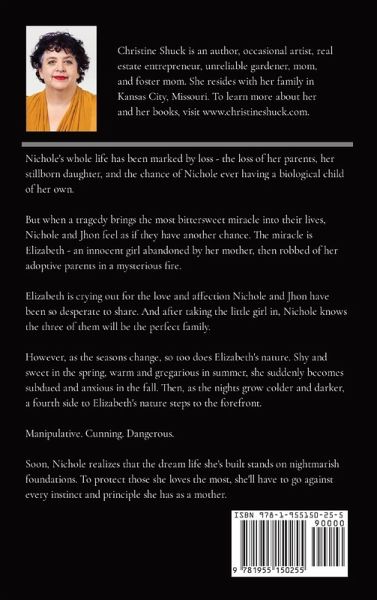 Nichole's whole life has been marked by loss - the loss of her parents, her stillborn daughter, and the chance of Nichole ever having a biological child of her own. But when a tragedy brings the most bittersweet miracle into their lives, Nichole and Jhon feel as if they have another chance. The miracle is Elizabeth - an innocent girl abandoned by her mother, then robbed of her adoptive parents in a mysterious fire. Elizabeth is crying out for the love and affection Nichole and Jhon have been so desperate to share. And after taking the little girl in, Nichole knows the three of them will be the perfect family. However, as the seasons change, so too does Elizabeth's nature. Shy and sweet in the spring, warm and gregarious in summer, she suddenly becomes subdued and anxious in the fall. Then, as the nights grow colder and darker, a fourth side to Elizabeth's nature steps to the forefront. Manipulative. Cunning. Dangerous. Soon, Nichole realizes that the dream life she's built stands on nightmarish foundations. To protect those she loves the most, she'll have to go against every instinct and principle she has as a mother.