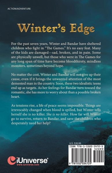 For the past seven years, Scarlet Winter and Oliver Bandar have sheltered children who fight in "The Games." It's no easy feat. Many of the kids are damaged-sad, broken, and in pain. Some are physically unwell, but those who were in The Games for any long span of time have become bloodthirsty, mindless monsters, sometimes beyond hope. No matter the cost, Winter and Bandar will not give up their cause, even if it brings the unwanted attention of the most demented man in the country. Soon, these two do-gooders end up as targets. Winter even suspects she's being poisoned. As her feelings for Bandar turn toward the romantic, she has more to worry about than a possible broken heart. What might happen, for instance, if Winter is forced to take part in The Games? As tensions rise, a life of peace seems impossible. Things are irrevocably changed when blood is spilled, but Winter tells herself she is no killer. She is no killer. How far will Winter go to survive, return to Bandar, and save the children who desperately need her help?