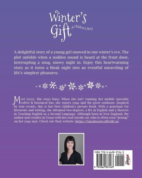 A delightful story of a young girl snowed in one winter's eve. The plot unfolds when a sudden sound is heard at the front door, interrupting a snug, snowy night in. Enjoy this heartwarming story as it turns a bleak night into an eventful unraveling of life's simplest pleasures. Meet Lizzy. She stays busy. When she isn't running her mobile specialty coffee & botanical bar, she enjoys yoga and the great outdoors. Inspired by true events, this is her first children's picture book. With a penchant for literature and writing, she obtained two degrees, a BA in English and a Masters in Teaching English as a Second Language. Although born in New England, the author now resides in Texas with her real tuxedo cat, who is often seen "posing" on her yoga mat. Check out their website: https: //tuxedocatscoffeellc.us