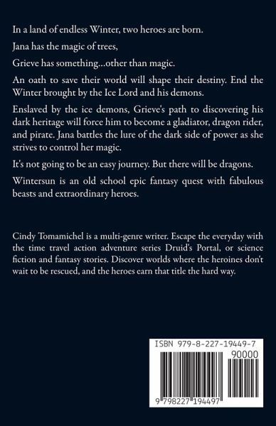 In a land of endless Winter, two heroes are born. Jana has the magic of trees, Grieve has something...other than magic. An oath to save their world will shape their destiny. End the Winter brought by the Ice Lord and his demons. Enslaved by the ice demons, Grieve's path to discovering his dark heritage will force him to become a gladiator, dragon rider, and pirate. Jana battles the lure of the dark side of power as she strives to control her magic. It's not going to be an easy journey. But there will be dragons. Wintersun is an old school epic fantasy quest with fabulous beasts and extraordinary heroes.
