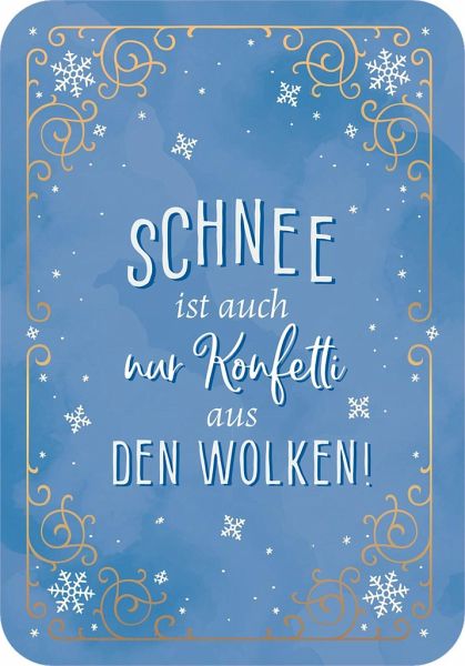 Zauberhafte Momente in der kalten Jahreszeit: 50 wunderschön illustrierte Kärtchen mit liebevollen Botschaften, Zitaten und SprüchenHyggeliges Ritual: Einfach eine Karte ziehen, sich inspirieren lassen und den Winter in vollen Zügen genießenWinterzauber verschenken: Ein liebevolles Adventsgeschenk oder Mitbringsel für die beste Freundin, liebe Kollegin oder Herzensschwester, aber auch eine motivierende kleine Aufmerksamkeit für sich selbstHochwertig verpackt: In der hübschen Box sind die Kärtchen gut geschützt und immer griffbereit