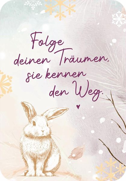 Die wunderschönen Karten begleiten dich und deine Lieblingsmenschen liebevoll durch den Winter. Ihre inspirierenden Botschaften schenken Motivation und Lebensfreude in der dunklen Jahreszeit. Ein wundervolles kleines Geschenk für alle, denen man zauberhafte winterliche Wohlfühlmomente schenken möchte.