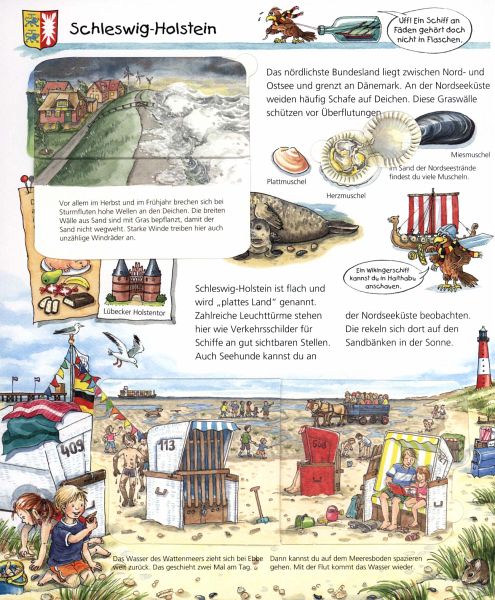 Worin unterscheiden sich der rheinische Karneval und die alemannische Fastnacht? Was kann man an Ostseestränden finden? Gibt es auf dem Blocksberg wirklich Hexen?In diesem Sonderband lernen Kinder von 4-7 Jahren Deutschland in all seinen Facetten kennen. Auf ein bis zwei Seiten wird jeweils ein Bundesland mit seinen Besonderheiten, die Kinder interessieren, vorgestellt. Zur besseren Orientierung gibt es zusätzlich zu den 22 Inhaltsseiten eine Ausklappseite mit einer Deutschlandkarte. Dort finden Kinder alle Bundesländer und viele Städte, Flüsse und Sehenswürdigkeiten wieder, die im Buch vorkommen.Deutschland hat viele Gesichter: Es gibt hohe Berge und weite Ebenen, lange Flüsse und große Seen sowie Küsten an der Nord- und der Ostsee. So unterschiedlich wie das Land sind auch die Menschen. Deutschland ist bunt und das Zuhause vieler Kulturen. Vom Lübecker Marzipan bis zur Weißwurst, von der Sächsischen Schweiz bis zur Frankfurter Skyline: In diesem Buch gibt es jede Menge zu entdecken. Es macht neugierig auf das eigene und andere Bundesländer, die bei Reisen erkundet werden können.Spielerisch die Welt entdeckenVoller Neugier und spielerischer Freude wollen Kinder alles ganz genau wissen und haben viele Fragen. Gar nicht so einfach, die passenden Antworten zu finden.Wieso? Weshalb? Warum? beantwortet die vielen Fragen auf Augenhöhe der Kinder. Mit den Büchern dieser Reihe können Kinder den Dingen auf den Grund gehen, selbstständig Zusammenhänge verstehen und erkennen, was dahintersteckt. So werden sie liebevoll in ihrer Entwicklung gefördert. Diese spielerische Herangehensweise und der Detailreichtum der Inhalte garantieren lange Freude an jedem einzelnen Buch.Seit über 20 Jahren begleitet die Wissensreihe Kinder und Eltern auf ihrer gemeinsamen Entdeckerreise zu den verschiedensten Themen, denen Kindern in ihrem Alltag begegnen oder an denen sie ein besonderes Interesse haben. Spielerische Elemente, ein humorvoller Blick, die Nähe zum Kind, die liebevolle Umsetzung und die qualitativ hochwertige Ausstattung machen Wieso? Weshalb? Warum? zur Nr. 1 im Kindersachbuchmarkt.Und so findet jeder Entdecker das passende Wissen:Wieso? Weshalb? Warum? junior für Kinder von 2-4 JahrenWieso? Weshalb? Warum? für Kinder von 4-7 Jahren Wieso? Weshalb? Warum? ProfiWissen für Kinder von 8-12 Jahren