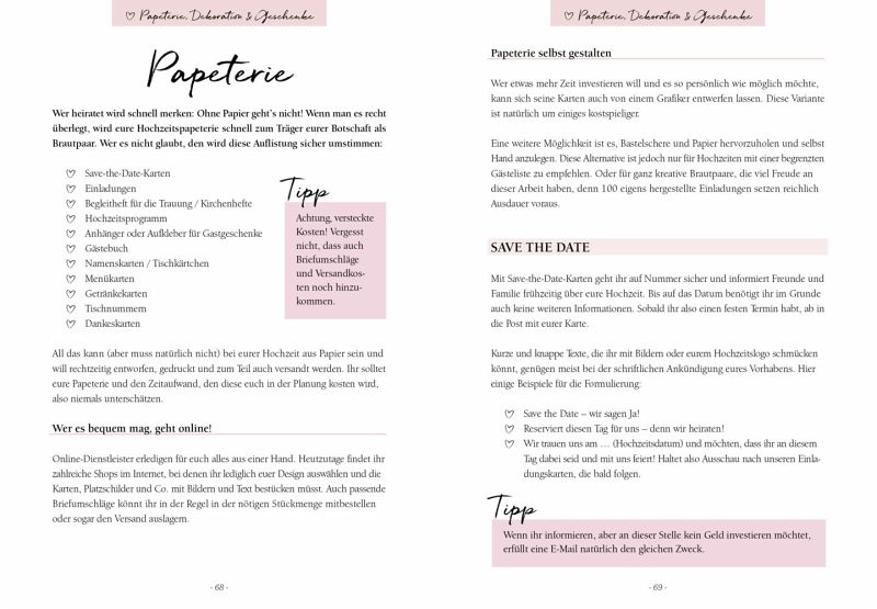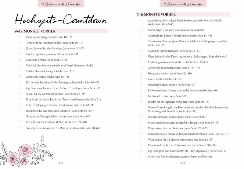Der romantische Antrag mit Blumen, Champagner und Diamantring ist gerade erst vorbei - da beginnt auch schön der Stress! Wo feiern wir? Wen laden wir ein? Wer sitzt wo und vor allem neben wem? Wer macht die schönsten Blumen und wo findet man das Traumkleid? Gar nicht so einfach, da den Überblick zu behalten. Mit dem wunderschön gestalteter Hochzeitsplaner ist das gar kein Problem! Schritt für Schritt zur Traumhochzeit ist mit den praktischen Checklisten und Profi-Tipps fast ein Kinderspiel. Das angehende Hochzeitspaar hat alle Planungsschritte entspannt im Blick - Zeit und Budgetplanung, Wahl der Location, Hochzeitskleid, Blumendeko, DJ-Wahl und es gibt noch viel Platz für eigene Gedanken, Überlegungen und Notizen. "Wir heiraten!" ist hochwertig im Handlettering-Stil gestaltet und mit Lesebändchen, Gummiband und Tasche für Visitenkarten und Notizzettel ausgestattet. Nur JA! sagen muss man jetzt noch selber!