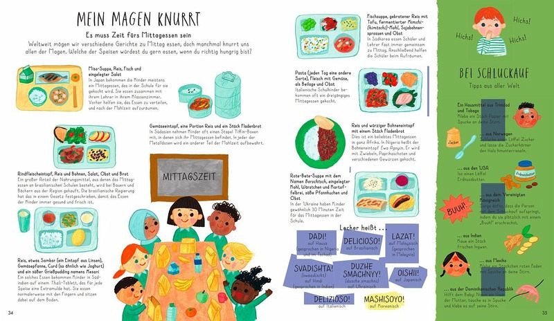 Egal welche Hautfarbe, welche Religion und welche Nationalität - rund um die Welt gibt es faszinierende Traditionen zu Anlässen und Ereignissen, die wir alle teilen. Warum werfen Kinder in Malawi und Simbabwe ihre Milchzähne aufs Dach? Wo spielt man die Muscheltrompete? Warum werden in manchen Ländern die Kinder zum Geburtstag am Ohrläppchen gezogen? Ein buntes Sachbilderbuch, randvoll mit komischen, lustigen, überraschenden Informationen über Spiele, Milchzahnmythen, Redensarten, Feste, Essen, tierische Freunde, Glücksbringer, Schluckaufmedizin und vielem mehr. Nebenbei lernen die kleinen Weltenbummler auch verschiedene Wörter in anderen Sprachen wie "Hallo", "Mama" und "Papa". So kunterbunt und vielfältig ist unsere Welt. Aber so ähnlich sind wir uns auch, wenn wir feiern, spielen und lachen!