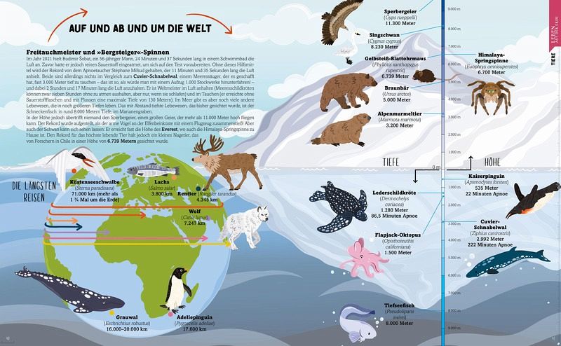 Größenvergleiche mit Aha-Effekt: die Welt mit dem, was wir kennen, verständlich machen!Wie viele Wasserflaschen braucht man, um den Comer See zu füllen? Wie riesig ist das größte Tier der Erde in Relation zum kleinsten Säugetier? Und wie oft passt ein Fußballfeld in das höchste Gebäude der Welt? Indem wir Vergleiche anstellen, wird einfach verständlich, was wirklich groß oder klein, schnell oder langsam ist.Von der Geschwindigkeit bis zur Tiefe, von der Größe bis zur Höhe, von der Länge bis zum Gewicht: In diesem Kindersachbuch sorgen verblüffenden Fakten rund um die Vermessung der Welt für nachvollziehbare Aha-Effekte.- Wissenswertes über Flüsse und Berge, Tiere und Lebewesen, Städte, Bauwerke und mehr- Ein außergewöhnliches Kinderbuch über Natur und Umwelt- Von der größten Stadt bis zur höchsten Temperatur: die Welt verstehen mit griffigen Größenvergleichen- Mit modernen Illustrationen und Infografiken von Bethany Lord- Ökologie für Kinder verständlich erklärt, perfekt als Sachbuch für die GrundschuleEindrucksvolle Vergleiche, vom höchsten Berg Europas bis zum größten Tier der WeltAllein der Pazifische Ozean könnte alle Kontinente der Erde oder 175 Mittelmeere umfassen. Ein Blauwal wiegt so viel wie 38 Elefanten, während der Gepard dreimal so schnell wie der schnellste Mensch der Welt ist. Und die Einwohner von Tokio und New York würden ganz Italien ausfüllen. Mit diesem Wissensbuch gehen Kinder auf Entdeckungsreise, zu ungewöhnlichen Naturphänomenen, verblüffenden Größenvergleichen und erstaunlichen Fakten. So einfach ist die Welt erklärt!