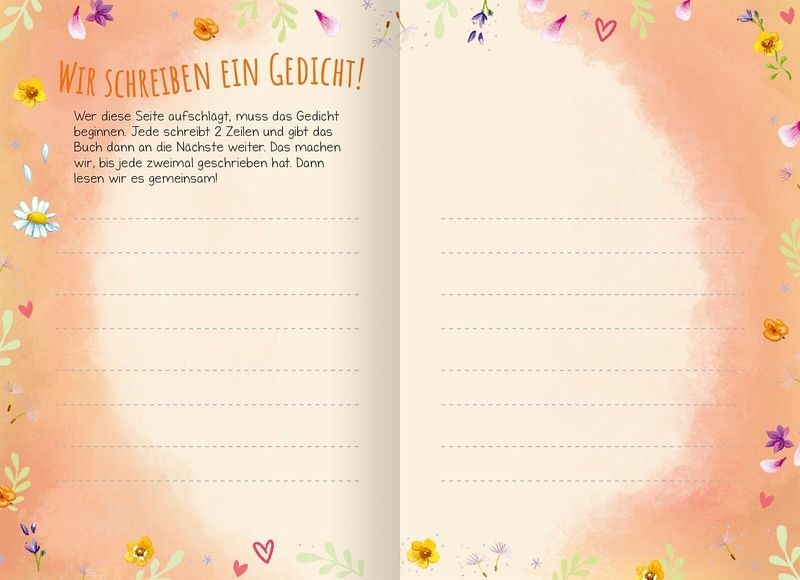 Hier könnt ihr schreiben, wann und über was ihr wollt. Das können die schönsten oder auch die peinlichsten Momente sein, Abenteuer, die ihr gemeinsam oder allein erlebt habt, oder einfach nur, wie das Mittagessen geschmeckt hat. Ihr könnt aufeinander reagieren, einander antworten, ein neues Thema eröffnen oder euch auf den Kreativseiten austoben. Alles ist möglich, nichts ist verboten - außer eure Geheimnisse unabgesprochen weiterzugeben. Denn dieses Tagebuch gehört nur euch!