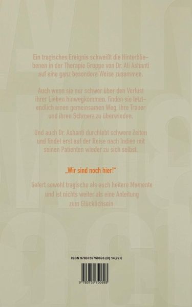 Ein tragisches Ereignis schweißt die Hinterbliebenen in der Therapie Gruppe von Dr. Ali Ashanti auf eine ganz besondere Weise zusammen. Auch wenn sie nur schwer über den Verlust ihrer Lieben hinwegkommen, finden sie letztendlich einen gemeinsamen Weg, ihre Trauer und ihren Schmerz zu überwinden. Und auch Dr. Ashanti durchlebt schwere Zeiten und findet erst auf der Reise nach Indien mit seinen Patienten wieder zu sich selbst. >>Wir sind noch hier!<< liefert sowohl tragische als auch heitere Momente und ist nichts weiter als eine Anleitung zum Glücklichsein