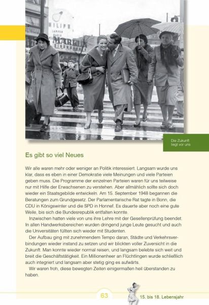 Aufgeregt und erwartungsvoll, so blickten wir damals in die Zukunft! Erinnern Sie sich mit uns an die ersten 18 Lebensjahre - an Ihre Kindheit und Jugend! Jahrgang 1930 - das heißt geboren in der Weimarer Republik, aufgewachsen in Krieg und Diktatur und hineingewachsen in die Anfänge von Wirtschaftswunder und Demokratie der Bonner Republik. Wir erinnern uns an eine Kindheit im Schoß der Großfamilie, aber auch an Bombennächte, Trümmer, Flucht und Schulausfall. Viele von uns verloren Väter und Brüder im Krieg und standen den Müttern beim Hamstern, Tauschen und Kohlenklauen bei. Als Jugendliche erlebten wir Besatzungszeit und Währungsreform und blickten einer hoffnungsvollen Zukunft entgegen.