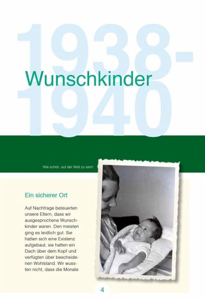 Aufgeregt und erwartungsvoll, so blickten wir damals in die Zukunft! Erinnern Sie sich mit uns an die ersten 18 Lebensjahre - an Ihre Kindheit und Jugend! Jahrgang 1938 - wir gehören zur Generation der Kriegskinder. Viele von uns wuchsen ohne Väter auf und überlebten Dank ihrer starken Mütter. Unsere Kindheit war geprägt von Bombardierung und Flucht, Hunger und Not. Mit Teddy und Püppi waren wir zufrieden und ließen unserer Fantasie freien Lauf, wenn wir draußen spielten. Als Jugendliche erlebten wir, dass es berauf ging, tanzten Boogie-Woogie und liebten es, ins Kino zu gehen. Wir waren jung und freuten uns auf ein gutes Leben.