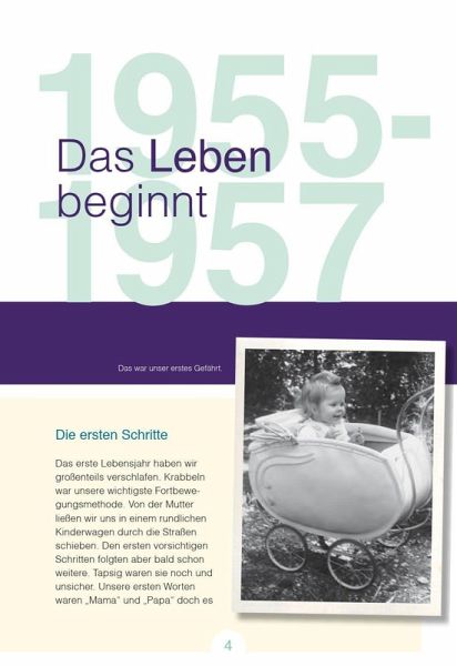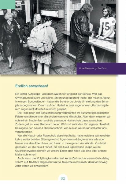 Aufgeregt und erwartungsvoll, so blickten wir damals in die Zukunft! Erinnern Sie sich mit uns an die ersten 18 Lebensjahre - an Ihre Kindheit und Jugend! Jahrgang 1955 - das war die Generation, der es allmählich besser ging, das Wirtschaftswunder stand schon vor der Tür. Der "Kalte Krieg" trennte die Welt in "Gut" und "Böse" und wir hatten das Glück, keinen Krieg im eigenen Land miterleben zu müssen. Wir genossen den Beginn des Pantoffelkinos, quälten uns noch mit Tintenfass und Feder, freuten uns über einen Roller namens "Pucky" und hatten mit 17 noch Träume. Aus den beschaulichen 50ern und den unruhigen 60ern führte unser Weg in die flotten 70er.
