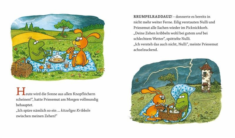Der Hase Nulli und der Frosch Priesemut lernen den Wetterfrosch Quaki kennen. Nulli findet Gefallen an dem Wetterfrosch - und Priesemut ist natürlich eifersüchtig. Doch dann erkennt Nulli, dass niemand seinen besten Freund Priesemut ersetzen kann.