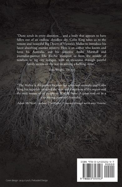 "Dune scrub in every direction... and a body that appears to have fallen out of an endless, cloudless sky. Colin King takes us to the remote and beautiful Big Desert of Victoria's Mallee to introduce his latest absorbing murder mystery. Here is an author who knows and loves his Australia, and his detective André Marshall and journalist-partner Ella Ritchie transport us from the middle of nowhere to big city intrigue, with an excursion through painful family secrets on the way to solving a baffling crime." Tony Wright, The Age "The Mallee is the perfect location for a murder mystery, and Colin King has superbly captured the vast, arid emptiness of the region and the stoic nature of its people in Wire & Bone. A great read set in a captivating corner of Australia." Adam McNicol - author, The Mallee: A journey through north-west Victoria
