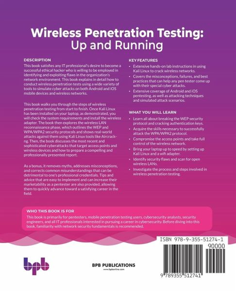 Examine, Attack, and Exploit Flaws and Vulnerabilities in Advanced Wireless Networks KEY FEATURES ¿ Extensive hands-on lab instructions in using Kali Linux to crack wireless networks. ¿ Covers the misconceptions, failures, and best practices that can help any pen tester come up with their special cyber attacks. ¿ Extensive coverage of Android and iOS pentesting, as well as attacking techniques and simulated attack scenarios. DESCRIPTION This book satisfies any IT professional's desire to become a successful ethical hacker who is willing to be employed in identifying and exploiting flaws in the organization's network environment. This book explains in detail how to conduct wireless penetration tests using a wide variety of tools to simulate cyber attacks on both Android and iOS mobile devices and wireless networks. This book walks you through the steps of wireless penetration testing from start to finish. Once Kali Linux has been installed on your laptop, as demonstrated, you will check the system requirements and install the wireless adapter. The book then explores the wireless LAN reconnaissance phase, which outlines the WEP and WPA/WPA2 security protocols and shows real-world attacks against them using Kali Linux tools like Aircrack-ng. Then, the book discusses the most recent and sophisticated cyberattacks that target access points and wireless devices and how to prepare a compelling and professionally presented report. As a bonus, it removes myths, addresses misconceptions, and corrects common misunderstandings that can be detrimental to one's professional credentials. Tips and advice that are easy to implement and can increase their marketability as a pentester are also provided, allowing them to quickly advance toward a satisfying career in the field. WHAT YOU WILL LEARN ¿ Learn all about breaking the WEP security protocol and cracking authentication keys. ¿ Acquire the skills necessary to successfully attack the WPA/WPA2 protocol. ¿ Compromise the access points and take full control of the wireless network. ¿ Bring your laptop up to speed by setting up Kali Linux and a wifi adapter. ¿ Identify security flaws and scan for open wireless LANs. ¿ Investigate the process and steps involved in wireless penetration testing. WHO THIS BOOK IS FOR This book is primarily for pentesters, mobile penetration testing users, cybersecurity analysts, security engineers, and all IT professionals interested in pursuing a career in cybersecurity. Before diving into this book, familiarity with network security fundamentals is recommended.