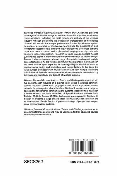 I Propagation Equalization and Interference Rejection.- 1. Measured 900 MHz Complex Impulse Responses in Mountainous Terrain: Relationship to Topographical Map Data.- 2. Blind Adaptive Antenna Arrays for Increased Capacity in Cellular Communications.- 3. Reverse Channel Performance Improvements in CDMA Cellular Communication Systems Employing Adaptive Antennas.- 4. A New Equalizer for Wideband OFDM Over a Frequency-Selective Fading Channel.- 5. Recent Developments in Applying Neural Nets to Equalization and Interference Rejection.- 6. Direct Sequence Spread Spectrum Interference Rejection Using Vector Space Projection Techniques.- 7. Solving the Near-Far Problem: Exploitation of Spatial and Spectral Diversity in Wireless Personal Communication Networks.- II PCS Applications.- 8. A Narrowband PCS Advanced Messaging System.- 9. Multicarrier Permutation Modulation for Narrowband PCS.- 10. Video Compression for Wireless Communications.- III Code Division Multiple Access.- 11. A Low-Power Handheld Frequency-Hopped Spread Spectrum Transceiver Hardware Architecture.- 12. An Overview of Broadband CDMA.- 13. Performance of Direct-Sequence Code-Division Multiple-Access Using Trellis-Coded Orthogonal Signalling.- 14. Noncoherent Spread Spectrum Receiver with Joint Detection and Synchronization Using Modified Matched FIR Filters.- 15. Optimum Acquisition Method Using Parallel Partial Correlator for Spread Spectrum Communication.- IV Simulation, Coding and Multiple Access.- 16. Importance Sampling Methodologies for Simulation of Wireless Communication Links.- 17. Markov Models for Burst Errors in Radio Communications Channels.- 18. Application of Variable-Rate Convolutional Code for Mobile Communications.- 19. Reservation Versus Demand-Assignment Multiplex Strategies for Packet Voice Communication Systems.- V Perspectives on Wireless Communication.- 20. The First Antenna and Wireless Telegraph, Personal Communications System (PCS), and PCS Symposium in Virginia.- 21. Mobile Communications: An IC Designer's Perspective.- 22. Network Connection & Traffic Interchange Agreements - A Wireless Personal Communications Opportunity.- 23. Whither Personal Communications.