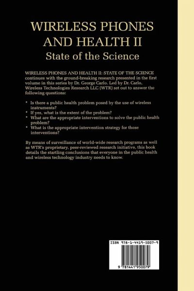 Wireless Phones and Health II: State of the Science continues with the ground-breaking research presented in the first volume in this series by Dr. George Carlo. Led by Dr. Carlo, Wireless Technologies Research LLC (WTR) set out to answer the following questions: