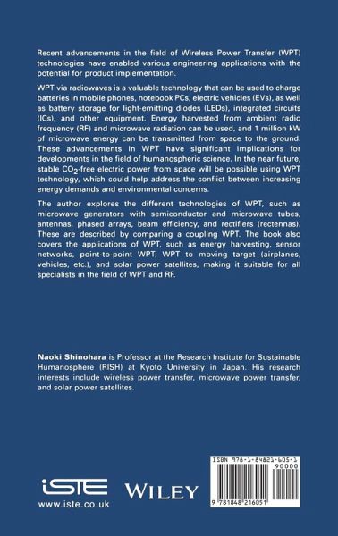Recent advances in Wireless Power Transmission (WPT) technologies have enabled various engineering applications with potential product implementation. WPT can be utilized to charge batteries in various pieces of equipment without the need for a wired connection. Energy can be harvested from ambient RF and microwave radiation and 1 million kW microwaves can be transmitted from space to the ground. This book covers all the theory and technologies of WPT, such as microwave generators with semi-conductors and microwave tubes, antennas, phased arrays, beam efficiency, and rectifiers (rectenna). The authors also discuss coupling WPT. Applications, such as energy harvesting, sensor networks, point-to-point WPT, WPT to moving targets (airplane, vehicle, etc.) and Solar Power Satellite are also presented.