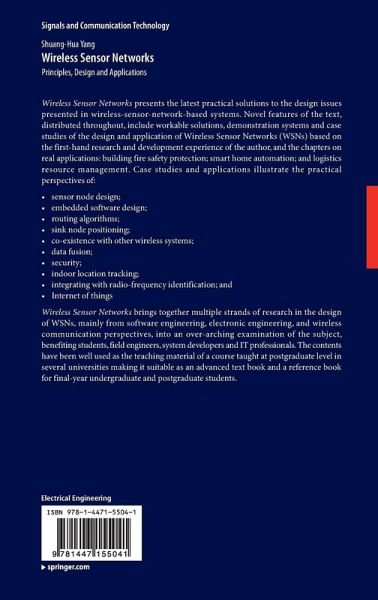 Wireless Sensor Networks presents the latest practical solutions to the design issues presented in wireless-sensor-network-based systems. Novel features of the text, distributed throughout, include workable solutions, demonstration systems and case studies of the design and application of wireless sensor networks (WSNs) based on the first-hand research and development experience of the author, and the chapters on real applications: building fire safety protection; smart home automation; and logistics resource management. Case studies and applications illustrate the practical perspectives of:
