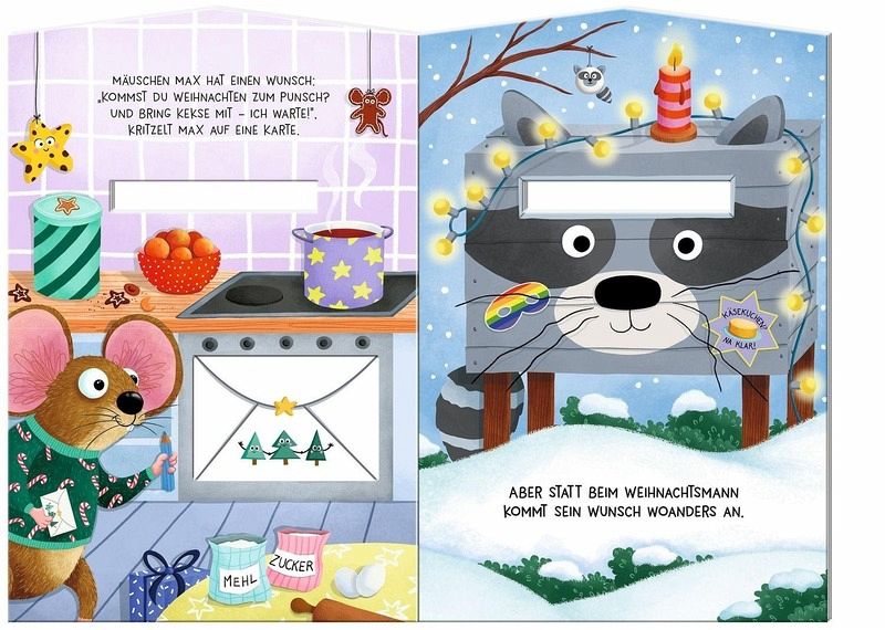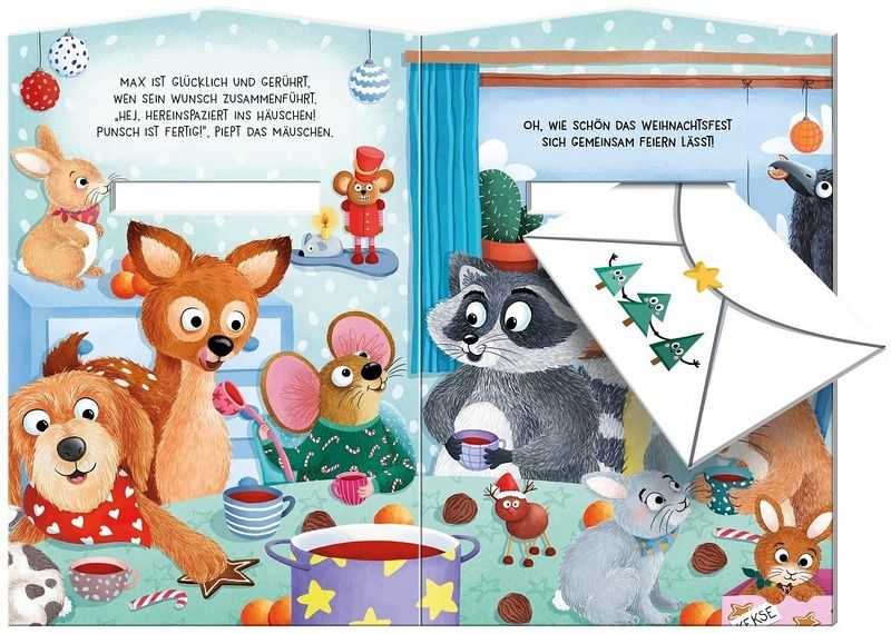 Mäuschen Max hat einen Wunsch: Kommst du Weihnachten zum Punsch? Doch, oje: Statt beim Weihnachtsmann kommt Max' Wunschzettel bei Wilma Waschbär an! Und wird dann von Tier zu Tier weitergeschickt. Wer am Ende wohl alles zu Max' Weihnachtsfest kommen wird? Finde es heraus und schick den Wunschzettel weiter!