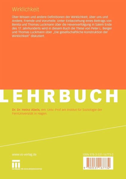 Über Wissen und andere Definitionen der Wirklichkeit, über uns und Andere, Fremde und Vorurteile. Unter Einbeziehung eines Beitrags von Benita und Thomas Luckmann über die Hexenverfolgung in Salem Ende des 17. Jahrhunderts wird in diesem Buch die These von Peter L. Berger und Thomas Luckmann über "Die gesellschaftliche Konstruktion der Wirklichkeit" diskutiert.