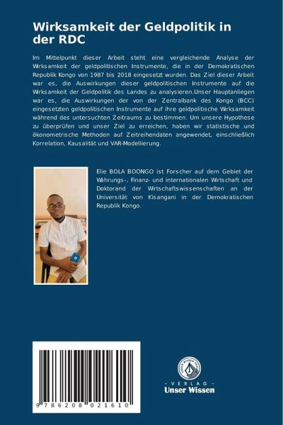 Im Mittelpunkt dieser Arbeit steht eine vergleichende Analyse der Wirksamkeit der geldpolitischen Instrumente, die in der Demokratischen Republik Kongo von 1987 bis 2018 eingesetzt wurden. Das Ziel dieser Arbeit war es, die Auswirkungen dieser geldpolitischen Instrumente auf die Wirksamkeit der Geldpolitik des Landes zu analysieren.Unser Hauptanliegen war es, die Auswirkungen der von der Zentralbank des Kongo (BCC) eingesetzten geldpolitischen Instrumente auf ihre geldpolitische Wirksamkeit während des untersuchten Zeitraums zu bestimmen. Um unsere Hypothese zu überprüfen und unser Ziel zu erreichen, haben wir statistische und ökonometrische Methoden auf Zeitreihendaten angewendet, einschließlich Korrelation, Kausalität und VAR-Modellierung.