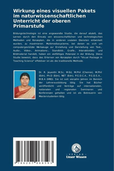 Bildungstechnologie ist eine angewandte Studie, die darauf abzielt, das Lernen durch den Einsatz von wissenschaftlichen und technologischen Methoden und Konzepten, die in anderen sozialen Diensten entwickelt wurden, zu maximieren. Multimediasysteme, bei denen es sich um computergestützte Werkzeuge zur Erstellung und Darstellung von Text-, Audio-, Video-, Animations-, Standbild-, Grafik-, Interaktivitäts- und Bildmaterial handelt, haben ein vielfältiges Potenzial in der Bildung. Diese Studie beweist, dass das Erlernen von Konzepten durch "Visual Package in Teaching Science" effektiver ist als die traditionelle Methode.