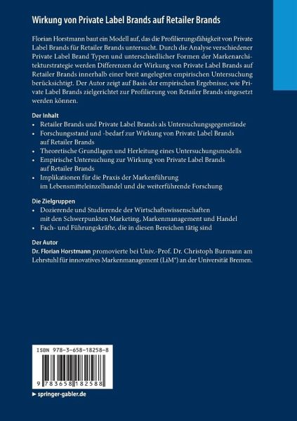Florian Horstmann baut ein Modell auf, das die Profilierungsfähigkeit von Private Label Brands für Retailer Brands untersucht. Durch die Analyse verschiedener Private Label Brand Typen und unterschiedlicher Formen der Markenarchitekturstrategie werden Differenzen der Wirkung von Private Label Brands auf Retailer Brands innerhalb einer breit angelegten empirischen Untersuchung berücksichtigt. Der Autor zeigt auf Basis der empirischen Ergebnisse, wie Private Label Brands zielgerichtet zur Profilierung von Retailer Brands eingesetzt werden können.