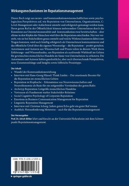 Dieses Buch zeigt aus neuro- und kommunikationswissenschaftlichen sowie psychologischen Perspektiven auf, wie Reputation von Unternehmen, Organisationen, C-Level-Management oder Aufsichtsrat entsteht und erfolgreich gemanagt werden kann.Ihren guten Ruf in der Öffentlichkeit können insbesondere Unternehmen zwar durch die Konsistenz aus Unternehmensrealität und -kommunikation bewirtschaften - aber alleine in den Köpfen der Menschen wird über die Reputation entschieden. Nur wer versteht, wie sie bei Stakeholdern genau entsteht und welche Wirkmechanismen dabei zum Tragen kommen, wird auch künftig erfolgreich als Unternehmen kommunizieren und das öffentliche Urteil über die eigenen Wesenszüge - die Reputation - positiv gestalten. Autorinnen und Autoren aus Wissenschaft und Praxis teilen in diesem Werk ihren Erfahrungs- und Wissensfundus, um Reputation als auslösende Wirkkraft im Gehirn für gewünschtes menschliches Handeln im Sinne vonUnternehmen zu erläutern. Die Autorinnen und Autoren liefern ganzheitliche, aber auch überraschende Perspektiven, neue Zusammenhänge und Insights sowie hilfreiche Praxistipps.