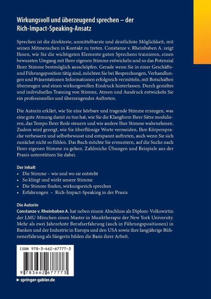 Der Inhalt Die Stimme - wie und wo sie entstehtSo klingt und wirkt unsere StimmeDie Stimme finden, wirkungsreich sprechenErfahrungen - Rich-Impact-Speaking in der Praxis