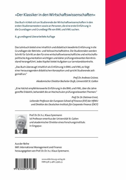 "Eine höchst empfehlenswerte Einführung in die BWL und VWL, über die Jahre gereifte Didaktik, behandelt die an Hochschulen prüfungsrelevanten Themen." Prof. Dr. Dr. Dietmar Ernst, Leitender Professor der European School of Finance (ESF) der HfWU und Direktor des Deutschen Instituts für Corporate Finance (DICF) "Das Buch überzeugt inhaltlich als Einführung in BWL und VWL; es folgt einer herausragenden didaktischen Konzeption und spricht Studierende zeitgemäß an." Prof. Dr. Andreas Grüner, Akademischer Direktor Bachelor-Stufe, Universität St. Gallen "Wirtschaft und Finanzen einfach und konkret auf den Punkt gebracht." Prof. Dr. Christian Hose, Hochschule für Ökonomie und Management