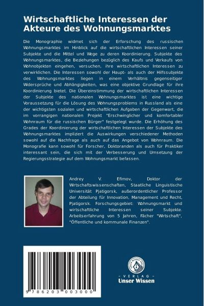 Die Monographie widmet sich der Erforschung des russischen Wohnungsmarktes im Hinblick auf die wirtschaftlichen Interessen seiner Subjekte und die Mittel und Wege zu deren Koordinierung. Subjekte des Wohnungsmarktes, die Beziehungen bezüglich des Kaufs und Verkaufs von Wohnobjekten eingehen, versuchen, ihre wirtschaftlichen Interessen zu verwirklichen. Die Interessen sowohl der Haupt- als auch der Hilfssubjekte des Wohnungsmarktes liegen in einem Verhältnis gegenseitiger Widersprüche und Abhängigkeiten, was eine objektive Grundlage für ihre Koordinierung bietet. Die Übereinstimmung der wirtschaftlichen Interessen der Subjekte des nationalen Wohnungsmarktes ist eine wichtige Voraussetzung für die Lösung des Wohnungsproblems in Russland als eine der wichtigsten sozialen und wirtschaftlichen Aufgaben der Gegenwart, die im vorrangigen nationalen Projekt "Erschwinglicher und komfortabler Wohnraum für die russischen Bürger" festgelegt wurde. Die Erhöhung des Grades der Koordinierung der wirtschaftlichen Interessen der Subjekte des Wohnungsmarktes impliziert die Auswirkungen verschiedener Methoden sowohl auf die Nachfrage als auch auf das Angebot von Wohnraum. Die Monografie kann sowohl für Forscher, Doktoranden als auch für Praktiker interessant sein, die sich mit der Verbesserung und Umsetzung der Regierungsstrategie auf dem Wohnungsmarkt befassen.