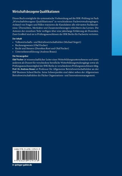 Dieses Buch ermöglicht die systematische Vorbereitung auf die IHK-Prüfung im Fach "Wirtschaftsbezogene Qualifikationen" im Studium für Bankfachwirte, aber auch in verschiedenen anderen Fachwirtstudiengängen. Anhand von Fragen und Fällen trainieren die Kandidaten alle relevanten Fachkenntnisse. Übersichten, Merksätze und Zusammenfassung erleichtern das Lernen. Die Autoren der einzelnen Teile sind seit Jahren in Prüfungsausschüssen für Fachwirte tätig.
