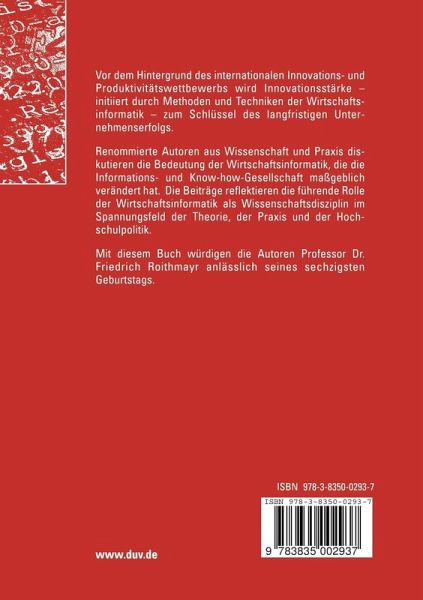 Renommierte Autoren aus Wissenschaft und Praxis diskutieren die Bedeutung der Wirtschaftsinformatik, die die Informations- und Know-how-Gesellschaft maßgeblich verändert hat. Die Beiträge reflektieren die führende Rolle der Wirtschaftsinformatik als Wissenschaftsdisziplin im Spannungsfeld der Theorie, der Praxis und der Hochschulpolitik.