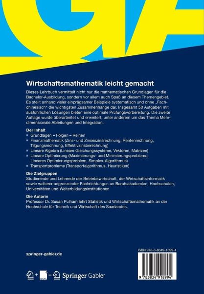 Dieses Lehrbuch vermittelt nicht nur die mathematischen Grundlagen für die Bachelor-Ausbildung, sondern vor allem auch Spaß an diesem Themengebiet. Es stellt anhand vieler einprägsamer Beispiele systematisch und ohne "Fachchinesisch" die wichtigsten Zusammenhänge zu Folgen, Reihen, Finanzmathematik, Linearer Algebra, Linearer Optimierung und Transportproblemen dar. Insgesamt 50 Aufgaben mit ausführlichen Lösungen bieten eine optimale Prüfungsvorbereitung. Die 2. Auflage wurde korrigiert und erweitert, z.B. um das Thema mehrdimensionale Ableitungen und Integration.