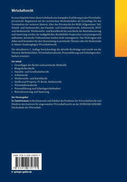 Unter Berücksichtigung der aktuellen Rechtslage wurde die aktualisierte 2. Auflage um die Themen Methodenlehre, Wirtschaftsstrafrecht, Prozessführung und Schiedsgerichtsbarkeit erweitert.