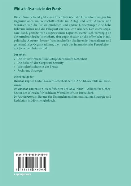 Dieser Sammelband gibt einen Überblick über die Herausforderungen für Organisationen im Wirtschaftsschutz im Alltag und stellt Ansätze und Szenarien vor, die für Unternehmen und andere Einrichtungen eine hohe Relevanz haben und die Fähigkeit zur Resilienz erhöhen. Der interdisziplinäre Band, gestaltet von ausgewiesenen Experten, richtet sich vorrangig an die mittelständische Wirtschaft, aber zugleich auch an die öffentliche Hand, politische Akteure, Berater, Wissenschaftler, Studierende, Journalisten und gemeinnützige Organisationen, die - auch aus internationaler Perspektive - mit Sicherheit befasst sind.