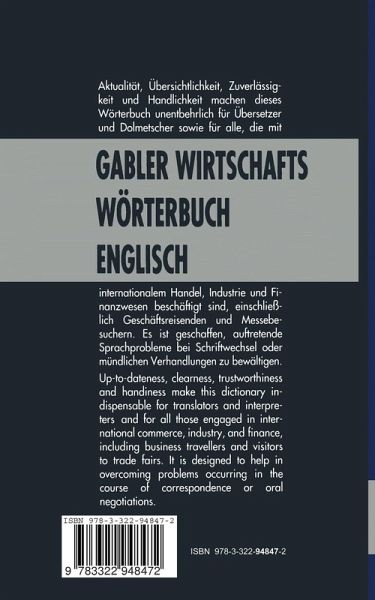 Englisch ist nach wie vor die Nummer eins der internationalen Handelssprachen. Das Wirtschaftswörterbuch Englisch bietet Ihnen alle Fachbegriffe aus Wirtschaft, Recht und Steuern. Auf verschiedene Verwendungszusammenhänge der einzelnen Begriffe wird jeweils hingewiesen. Englische und amerikanische Termini sind in ihren Besonderheiten getrennt aufgeführt. So finden Geschäftsreisende, Messebesucher, Fach- und Führungskräfte und auch Dolmetscher hier ein unentbehrliches Hilfsmittel für Ihre englischsprachigen Kontakte.