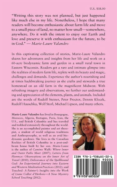 "Writing this story was not planned, but just happened like much else in my life. Nonetheless, I hope that many readers will become enthusiastic about farm life and move to a small piece of land, no matter how small"somewhere, anywhere. Do it with the intent to enjoy our Earth and love and preserve it with enthusiasm for the future, to be in God." --Marie-Laure Valandro In this captivating collection of stories, Marie-Laure Valandro shares her adventures and insights from her life and work on a sixty-acre biodynamic farm and garden in a small rural town in eastern Wisconsin. Readers get a rare and intimate glimpse into the realities of modern farm life, replete with its beauty and magic, challenges and demands. Experience the author's nourishing and at times backbreaking journey as she crafts and stewards a true homestead on an old farm in the magnificent Midwest. With refreshing imagery and observations, we further our understanding and appreciation of the elements, plants, and animals. Included are the words of Rudolf Steiner, Peter Proctor, Dennis Klocek, Rudolf Hauschka, Wolf Storl, Michael Lipson, and many others.