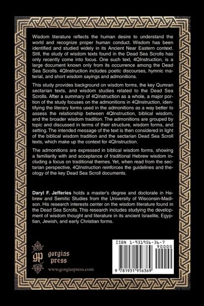 This study identifies the wisdom forms found in the admonition sections of the Dead Sea Scroll 4QInstruction, groups the admonitions by topic, and considers their structure, form, setting, and intention in light of biblical wisdom and the sectarian texts.