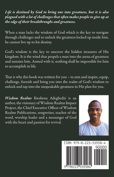 Life is destined by God to bring one into greatness, but it is also plagued with a lot of challenges that often makes people to give up at the edge of their breakthroughs and greatness. When a man lacks the wisdom of God which is the key to navigate through challenges and to unlock the greatness locked up inside him, he cannot live up to his destiny. God's wisdom is the key to uncover the hidden treasures of His kingdom. It is the wind that propels a man into the arena of greatness and sustains him. Armed with it, nothing shall be impossible for him to accomplish in life. That is why this book was written for you - to arm and inspire, equip, challenge, furnish and bring you into the realm of God's wisdom to unlock and tap into the unspeakable greatness in His plan for you.