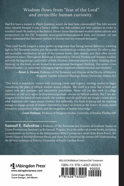 If the fear of the Lord is the beginning of wisdom formed in the life of faith, its end is nothing less than the shaping of a moral self and community attuned to the character of God. This pursuit of wisdom is an ongoing journey, never a simple arrival. For the wisdom writings of the Old Testament, the pursuit of wisdom calls for the ongoing attainment of instruction, insight, shrewdness, knowledge, prudence, learning, and skill. And persons who attain wisdom think more deeply, are more discerning, and have a keener insight into the complexities and nuances of decision making. For a world-perspective that assumes the power and reality of divinity, being wise means living ethically - and to live ethically, one must be in a constant intellectual pursuit of meaning. The book details the structure, themes, and contribution to both ancient and modern society of Job, Proverbs, and Ecclesiastes. The chapters on Sirach and the Wisdom of Solomon will discuss the consonance and dissonance with "canonical wisdom," giving special attention to the development of their core ideas. The book will conclude with a chapter on Wisdom's abiding legacy.