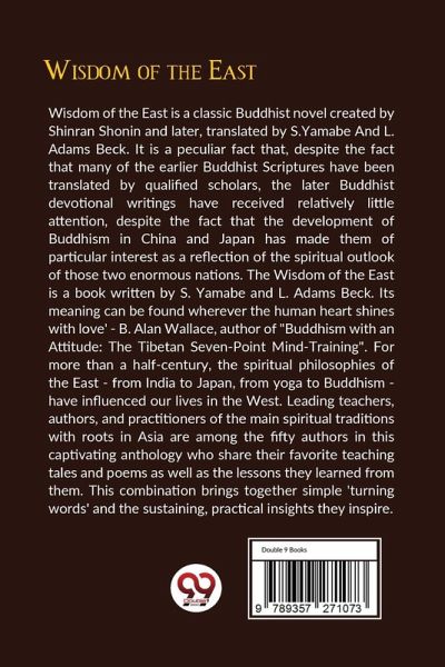 Wisdom of the East is a classic Buddhist novel created by Shinran Shonin and later, translated by S.Yamabe And L. Adams Beck. It is a peculiar fact that, despite the fact that many of the earlier Buddhist Scriptures have been translated by qualified scholars, the later Buddhist devotional writings have received relatively little attention, despite the fact that the development of Buddhism in China and Japan has made them of particular interest as a reflection of the spiritual outlook of those two enormous nations. The Wisdom of the East is a book written by S. Yamabe and L. Adams Beck. Its meaning can be found wherever the human heart shines with love' - B. Alan Wallace, author of "Buddhism with an Attitude: The Tibetan Seven-Point Mind-Training". For more than a half-century, the spiritual philosophies of the East - from India to Japan, from yoga to Buddhism - have influenced our lives in the West. Leading teachers, authors, and practitioners of the main spiritual traditions with roots in Asia are among the fifty authors in this captivating anthology who share their favorite teaching tales and poems as well as the lessons they learned from them. This combination brings together simple 'turning words' and the sustaining, practical insights they inspire.
