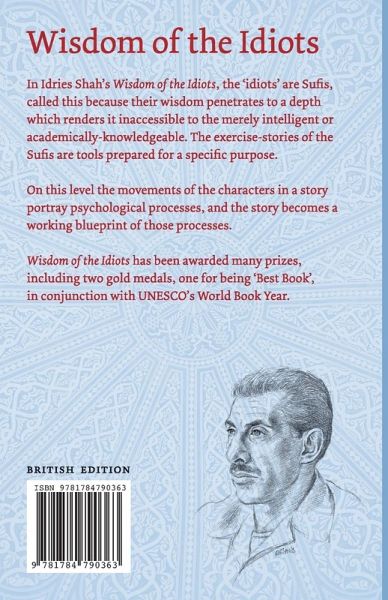 In Idries Shah's Wisdom of the Idiots, the 'idiots' are Sufis, called this because their wisdom penetrates to a depth which renders it inaccessible to the merely intelligent or academically-knowledgeable. The exercise-stories of the Sufis are tools prepared for a specific purpose. On this level the movements of the characters in a story portray psychological processes, and the story becomes a working blueprint of those processes. Wisdom of the Idiots has been awarded many prizes, including two gold medals, one for being 'Best Book', in conjunction with UNESCO's World Book Year.