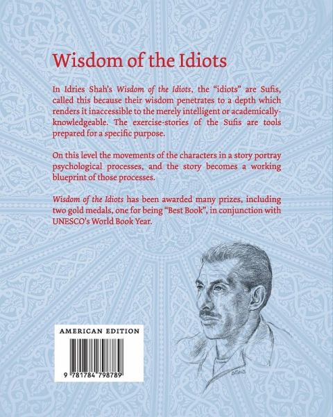 In Idries Shah's Wisdom of the Idiots, the 'idiots' are Sufis, called this because their wisdom penetrates to a depth which renders it inaccessible to the merely intelligent or academically-knowledgeable. The exercise-stories of the Sufis are tools prepared for a specific purpose. On this level the movements of the characters in a story portray psychological processes, and the story becomes a working blueprint of those processes. Wisdom of the Idiots has been awarded many prizes, including two gold medals, one for being 'Best Book', in conjunction with UNESCO's World Book Year.