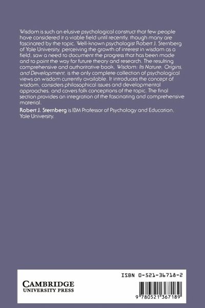This authoritative volume represents the only complete collection of psychological views on wisdom currently available. Considered an elusive psychological construct until recently, wisdom is currently attracting interest as an independent field. The acclaimed psychologist Robert Sternberg perceived the need to document the progress made in the field, and to point the way for future theory and progress. The resulting book introduces the concept of wisdom, considers philosophical issues and developmental approaches, and covers folk conceptions of the topic. The final chapter presents an integration of the fascinating and comprehensive material.