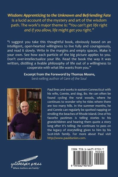 Wisdom: Apprenticing to the Unknown and Befriending Fate is a lucid account of such an apprenticeship. The work's major theme is: You can't get life right; and if you allow, life may get you right. Efforts to get life right-including the Spiritual Bypass, the Intellectual Bypass, the Psychological Processing Bypass, and the Trivia Bypass-are debunked as alleged detours around life's mystery, unpredictability, and insecurity. The work offers a unique developmental model describing how wisdom evolves as we allow defeat to interrupt the ego's claim to sovereignty, preparing us to reconcile life's inevitable dominance. We can then begin to live the question: What is life asking of us? Further maturation of the apprenticeship happens as we live the question: How do we confirm what truly matters? The target audience is composed of those who refuse to believe that aging means accumulating years while slipping into mediocrity, massaged by cocktails and playing golf. My work continues to reveal a population approaching middle age who are disillusioned with dominant cultural understandings of aging. They want to believe that aging is not simply about escaping an unfulfilling career and experiencing mental and physical decline. This group will greatly benefit from the work's lucid account of how to construct a personal epistemology, or what it means "to learn about how to know." The text introduces the notion of good knowing, which avoids branding a fact with certainty. The reader is encouraged to commit to knowing the knower, in regard to biases and psychological defenses, welcoming ambiguity and ignorance. The target audience further encompasses those reaching retirement age who want to believe that their life experience is not limited to a series of personal and professional victories and defeats. Rather, they wish to leave behind a legacy as a final offering, embracing a life well-lived while feeling prepared to leave this earthly plane. The aging apprentice is inspired to acquire an artifact symbolic of some early driving force that rendered power in the name of adventure and ambition. Seven stages of development are examined, leading from the driving force of ambition to the driving force of discriminating wisdom. With less to prove, grace comes to the aging apprentice, interrupting a sense of urgency. Gratitude reconciles us with grace, morphing into the eyes of mercy, as the aging apprentice now knows the true name of home.