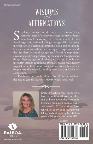 Suddenly thrown from the protective comfort of the idealistic image of a happy marriage this stay-at-home mom found the courage to reinvent herself. She was forced to get a job while still raising a teenager. With the timely intervention of a certain inspirational book and nothing to lose except her low self-esteem, she began to experiment with the idea that she could change her life and its unpleasant circumstances by simply changing the way she thought about things. Fighting against old thought patterns of doubt and insecurity through continuous affirmations, she courageously stepped out of her comfort zone and eventually bought the shop where she worked, the shop next door, and then her competition. This book contains the ideas, affirmations, and wisdoms she used to gain that success. May they help you as well.
