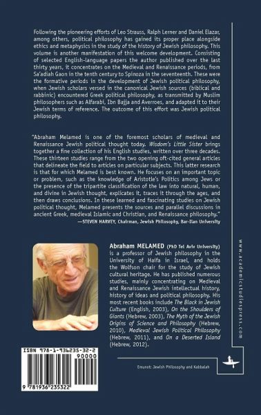 The study of Jewish political philosophy is a recently established field in the study of Jewish philosophy. While in older histories of Jewish philosophy there is hardly any discussion of this topic, recent editors of such books have found it useful to add chapters on it. Following the pioneering efforts of Leo Strauss, Ralph Lerner and Daniel Elazar, among others, political philosophy has gained its proper place alongside ethics and metaphysics in the study of the history of Jewish philosophy. This volume is another manifestation of this welcome development. Consisting of selected English-language papers the author published over the last thirty years, it concentrates on the Medieval and Renaissance periods, from Sa'adiah Gaon in the tenth century to Spinoza in the seventeenth. These were the formative periods in the development of Jewish political philosophy, when Jewish scholars versed in the canonical Jewish sources (biblical and rabbinic) encountered Greek political philosophy, as transmitted by Muslim philosophers such as Alfarabi, Ibn Bajja and Averroes, and adapted it to their Jewish terms of reference. The outcome of this effort was Jewish political philosophy.
