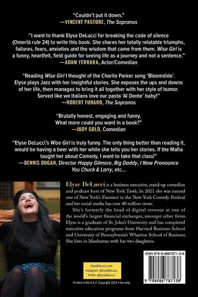 There she was, a small girl thinking why Wise Guys in no Wise Girls? Elyse DeLucci - former Wall Street executive and stand-up comedian (yes you read that right) - is here to tell you how to get ahead in your career and life. With her signature New York voice, this standup comedian, podcast host (New York Tawk with Elyse DeLucci) and viral social media personality, lays out the principles she learned from her loud New York Italian-American family. These are The Rules she learned (sometimes the hard way) from her first job in a boiler room, to climbing the corporate ranks, to comedy stages across the country. From Be Cool (Rule #1) because They Will Test You (#17) to Omertà: The Code of Silence (#24), Wise Girl guides you through the shark tank of businesses, bosses, and co-workers... just remember to Slice Garlic Thin (#31). As a woman in a male-dominated world, Elyse is here to tell you how to get through it: You Gotta Laugh (#32). You don't have to follow The Rules in Wise Girl, but you'll wish you had.